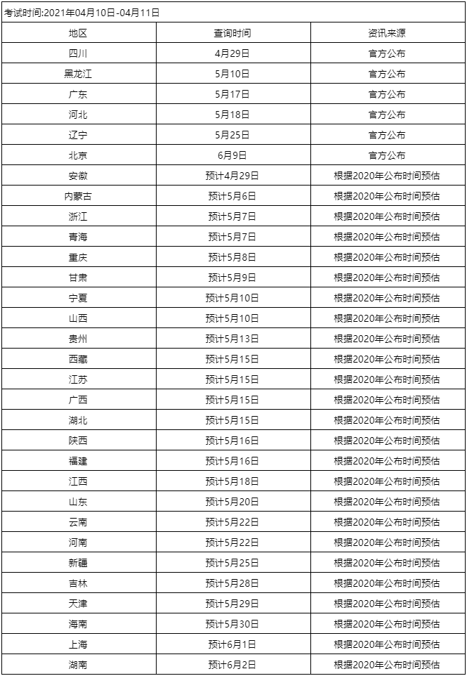 2021年4月自考全国成绩查询时间汇总